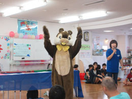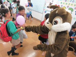 お祭りが始まると館内にはボウリング、さかなつり、ヨーヨーつり、うちわ作り等の遊びのコーナー!また、おばけ屋敷は今年も大人気でした。ウォータースライダーは少し涼しくなってしまったので、ボールプールすべり台に変更!着替えがなくても楽しめたと好評でした。4号棟前広場の模擬店では子ども達の好きなかき氷やフランクフルト、焼きそば、からあげ等のお店がいっぱい!嬉しそうにお買い物をして食べていました。エンディングではころころ学童保育クラブのダンス発表!MOこもこのマスコットキャラクターリスのリッキーも一緒に踊って盛り上がりました。途中パラパラ雨が落ちてきましたが子ども達はお構いなしに楽しんでいました。色々お手伝いしてくださった近隣の方々本当に感謝です。今年も皆さんの協力のおかげで事故や怪我もなく、無事終了することができました。また、来年の「MOこもこ祭」もお楽しみに!