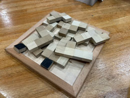 沢山の木の正方形のブロックをつないでピースにし、その組み立てはちょっと大変そうでした。難しかったのでこっそり手伝ってもらった人もいたみたいですが、全員が何とか完成させられました。