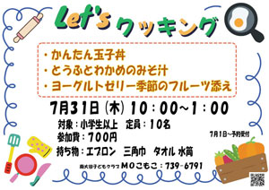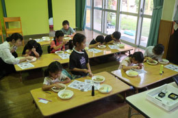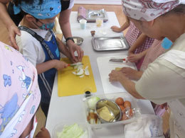 地域の方のご指導で、お料理イベントを行いました。メニューは、「かんたん玉子丼、とうふとわかめの味噌汁、ヨーグルトゼリー季節のフルーツ添え」です。2グループに分かれて皆手際よくお料理を進めていくことができました。出来上がったお料理は、本日のみんなのランチとなり、大好評でした。「先生、すごく美味しかった~!」「楽しかった~!」と何回も言ってくれる子もいました。次回は12月です。お楽しみに。