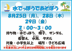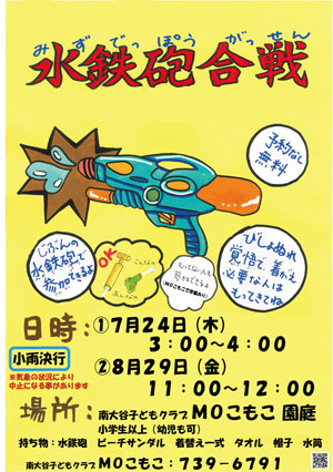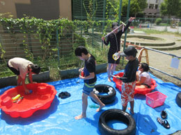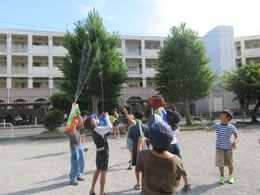 今年の夏は天候に恵まれ、昨年は猛暑と雨で1回しかできなかった水でっぽうあそびを、3回すべて実施することができました。
