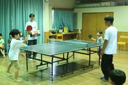 大会当日まではお互いの児童館でそれぞれ強化練習会を通して練習をしました。ころころでは残念ながら他の予定で当日出られない卓球部員が、他の参加者にコツや攻め方を教えながら、勝利の気持ちを託す姿が見られました。