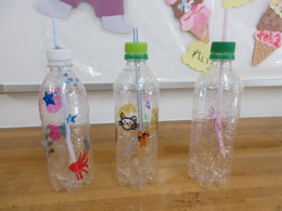 8月は夏なので、水遊びをテーマにまずは簡単にできるペットボトル水鉄砲作りをしました。