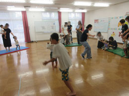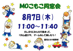 乳幼児の頃、ママと一緒に遊びに来ていて、MOこもこタイムを卒業し、幼稚園や保育園にいったお友達が久しぶりに集まりました。リズム遊びや沈没ゲーム等でいっぱい身体を動かし、最後は「5つのメロンパン」のパネルシアターを楽しみました。みんな背も伸び、素敵なお兄さんお姉さんになっていて先生達は嬉しかったです。またいつでも遊びに来て、元気な顔を見せてね!