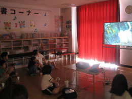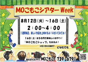 夏休みの1週間毎日日替わりで映画の上映会を行いました。子どもたちのリクエストもあり、皆で大画面の上映会を楽しみました。最終日は「MOこもこショップ」も同時開催!おやつを食べながら映画をみることができ、子どもたちは喜んで、何回もおかわりをする子もいました。