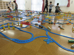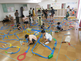 MOこもこのホール全体を使って、壮大な線路の街を作って、電車を走らせるイベントです。プラレールのおもちゃがあるお家は多いと思いますが、こんなに広い場所で作り上げていくのはワクワクしますね!お友達が作ったレールと自分が作ったレールを繋ぎ合わせて、どんどん大きな線路になっていきます。また、電車の詳しい子が小さい子に電車の名前を教えてあげたりとコミュニケーションの繋がりも!最後のお片付けもみんなで協力して行いました。次回は一月に開催します。電車好きな皆さん、ぜひ参加してみて下さい!