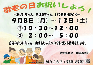 敬老の日お祝いしよう!~おじいちゃん、おばあちゃんいつもありがとう~
