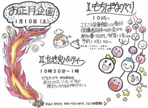 今年のお正月も快晴に恵まれ、ころころ児童館のたき火パーティーを青空の下で楽しく行うことができました。