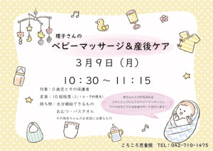 理子さんの「孤独な孤育てをなくす!」という思いのもと、ベビーマッサージを通して、赤ちゃんと保護者がゆったりと触れ合いながら、安心して過ごせる時間を大切にしています。赤ちゃんとのスキンシップを楽しむだけでなく、保護者の方にとっても、日々の忙しさから少し離れてほっとひと息つける、心地よい時間になっています。