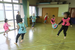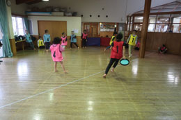 当日のメンバー変更などもありましたが、参加者同士で声を掛け合いながら、最後まで楽しくドッヂビーに取り組むことができました。特に「かたきうち」では学年ごとに分かれて行ったことで、普段は上級生相手に苦戦している子どもたちも活躍する場面も見られました。
