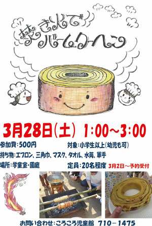今年も年度末恒例のバームクーヘン作りを行いました。